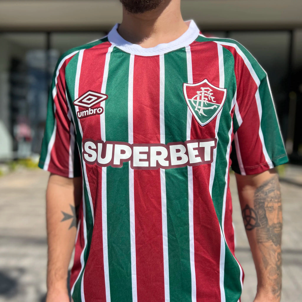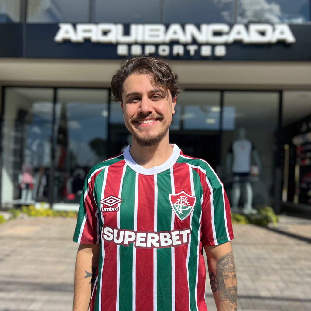 A Camisa Umbro Fluminense 2025/26 I - Jhon Arias 21 é o manto ideal para quem vibra com cada jogada do craque colombiano. Com as tradicionais listras verticais em grená, verde e branco, este modelo oficial traz o nome e o número 21 do Arias aplicados nas costas com acabamento premium. Representando a alma tricolor com autenticidade e estilo, esta camisa oferece conforto, caimento perfeito e a emoção de vestir o número de um dos grandes ídolos da torcida.